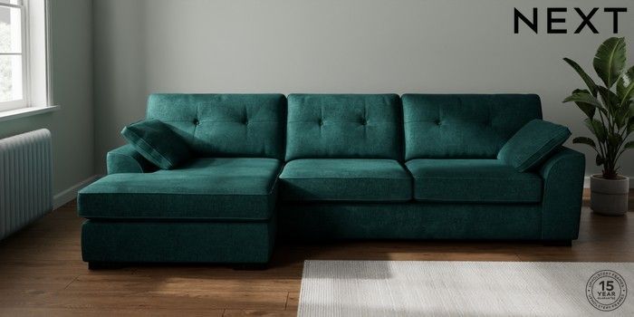 7.2.10 Buy Stamford Buttoned Back Large Sofa Chaise - Left Hand Plush Chenille Dark Teal Green Large Square Angle - Dark from the Laura Ashley online shop Click here to use our website with more accessibility support, for example screen readers