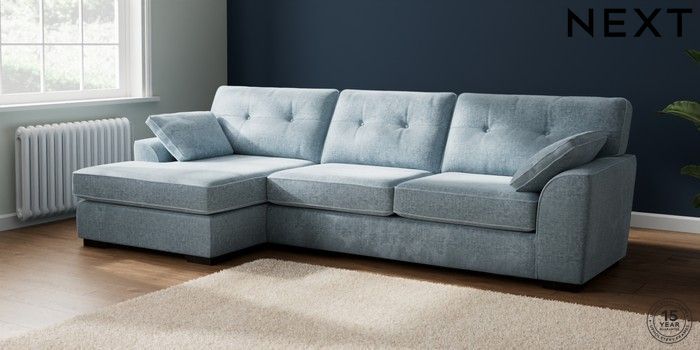 7.2.6 Buy Stamford Buttoned Back Large Sofa Chaise - Left Hand Plush Chenille Light Blue Large Square Angle - Dark from the Laura Ashley online shop Click here to use our website with more accessibility support, for example screen readers