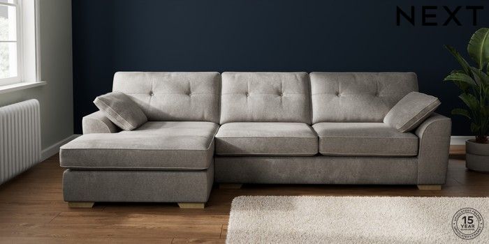 7.2.10 Buy Stamford Buttoned Back Large Sofa Chaise - Left Hand Plush Chenille Light Grey Large Square Angle - Light from the Laura Ashley online shop Click here to use our website with more accessibility support, for example screen readers