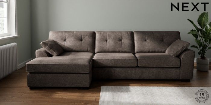 7.2.10 Buy Stamford Buttoned Back Large Sofa Chaise - Left Hand Plush Chenille Mink Brown Large Square Angle - Dark from the Laura Ashley online shop Click here to use our website with more accessibility support, for example screen readers