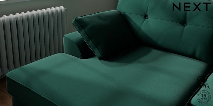 7.2.10 Buy Stamford Buttoned Back Large Sofa Chaise - Left Hand Plush Velvet Easy Clean Bottle Green Large Square Angle - Mid from the Laura Ashley online shop Click here to use our website with more accessibility support, for example screen readers