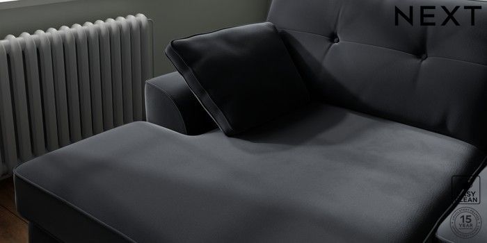 7.2.10 Buy Stamford Buttoned Back Large Sofa Chaise - Left Hand Plush Velvet Easy Clean Charcoal Grey Large Square Angle - Light from the Laura Ashley online shop Click here to use our website with more accessibility support, for example screen readers