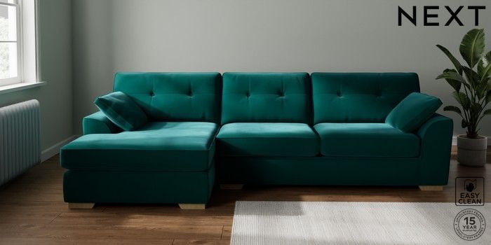 7.2.10 Buy Stamford Buttoned Back Large Sofa Chaise - Left Hand Plush Velvet Easy Clean Juniper Green Large Square Angle - Light from the Laura Ashley online shop Click here to use our website with more accessibility support, for example screen readers