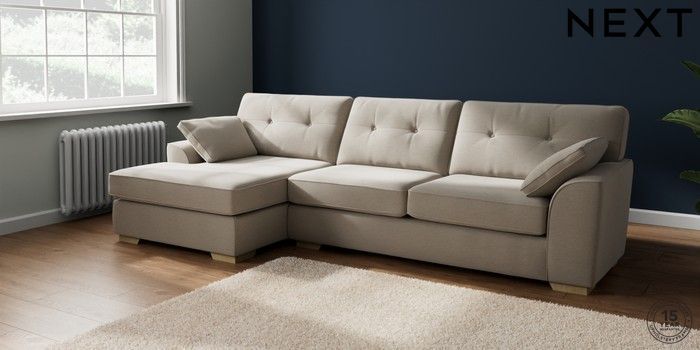 7.2.10 Buy Stamford Buttoned Back Large Sofa Chaise - Left Hand Ripple Chenille Light Natural Large Square Angle - Light from the Laura Ashley online shop Click here to use our website with more accessibility support, for example screen readers