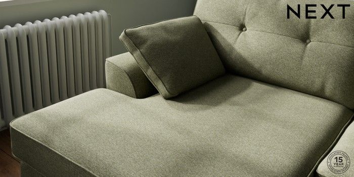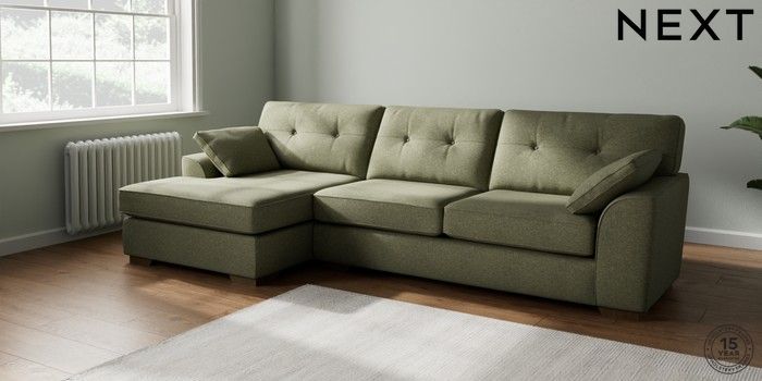 7.2.10 Buy Stamford Buttoned Back Large Sofa Chaise - Left Hand Tweedy Chenille Mid Moss Green Large Square Angle - Mid from the Laura Ashley online shop Click here to use our website with more accessibility support, for example screen readers
