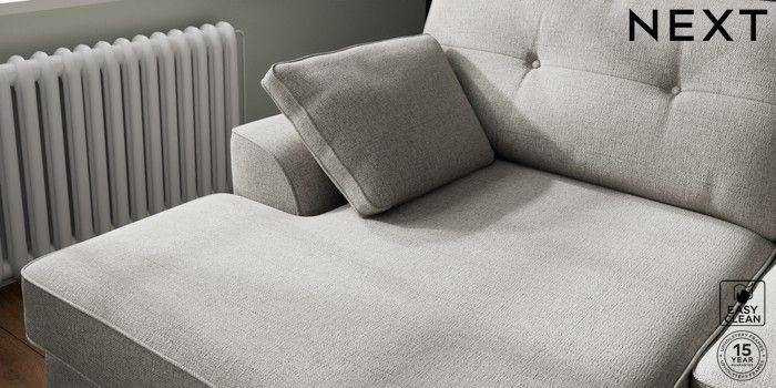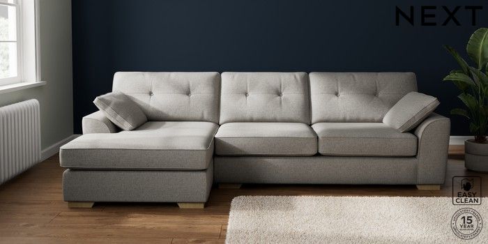 7.2.10 Buy Stamford Buttoned Back Large Sofa Chaise - Left Hand Woven Chenille Easy Clean Light Grey Large Square Angle - Light from the Laura Ashley online shop Click here to use our website with more accessibility support, for example screen readers