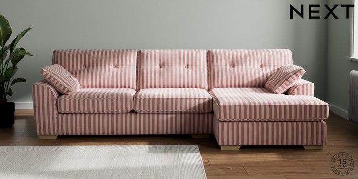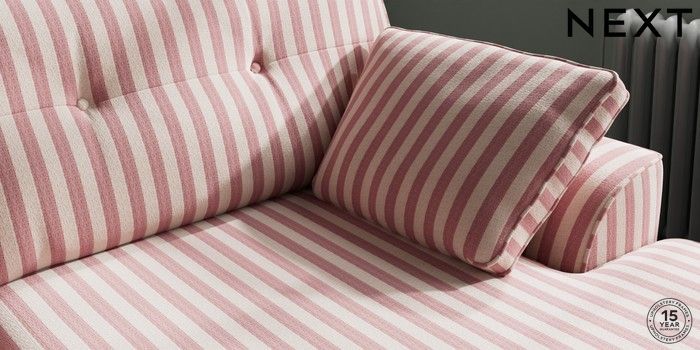 7.3.1 Buy Stamford Buttoned Back Large Sofa Chaise - Right Hand Bold Chenille Stripe Dark Pink Large Square Angle - Light from the Laura Ashley online shop Click here to use our website with more accessibility support, for example screen readers