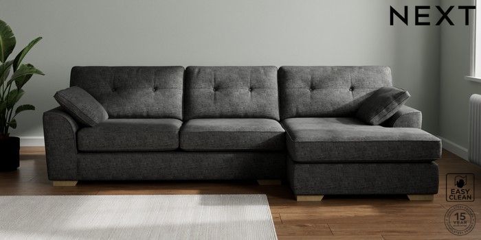 7.2.10 Buy Stamford Buttoned Back Large Sofa Chaise - Right Hand Boucle Weave Easy Clean Charcoal Grey Large Square Angle - Light from the Laura Ashley online shop Click here to use our website with more accessibility support, for example screen readers