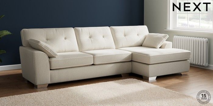 7.3.1 Buy Stamford Buttoned Back Large Sofa Chaise - Right Hand Chenille Stripe Moss Green Large Square Angle - Chrome Metal from the Laura Ashley online shop Click here to use our website with more accessibility support, for example screen readers