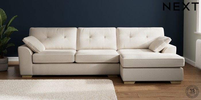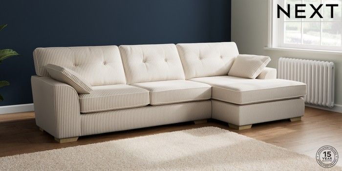 7.3.1 Buy Stamford Buttoned Back Large Sofa Chaise - Right Hand Chenille Stripe Natural Large Square Angle - Light from the Laura Ashley online shop Click here to use our website with more accessibility support, for example screen readers