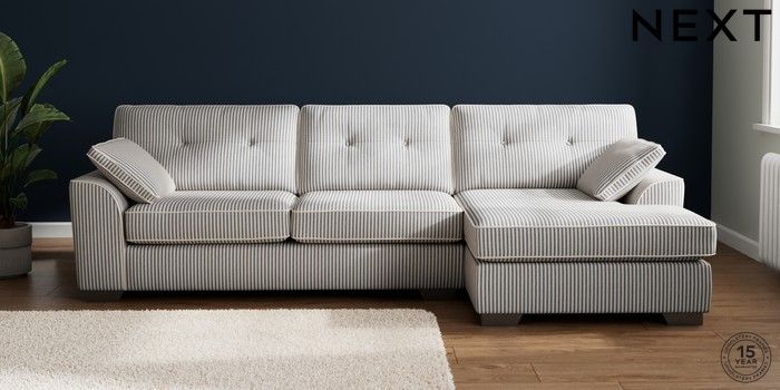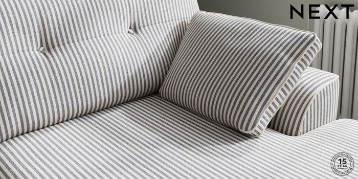 7.3.1 Buy Stamford Buttoned Back Large Sofa Chaise - Right Hand Chenille Stripe Slate Blue Large Square Angle - Gunmetal from the Laura Ashley online shop Click here to use our website with more accessibility support, for example screen readers