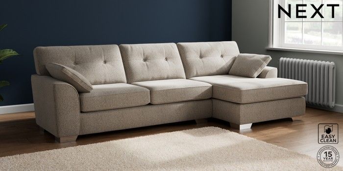7.2.10 Buy Stamford Buttoned Back Large Sofa Chaise - Right Hand Chunky Boucle Easy Clean Dove Large Square Angle - Chrome Metal from the Laura Ashley online shop Click here to use our website with more accessibility support, for example screen readers