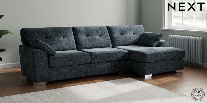 7.2.6 Buy Stamford Buttoned Back Large Sofa Chaise - Right Hand Chunky Chenille Dark Navy Blue Large Square Angle - Chrome Metal from the Laura Ashley online shop Click here to use our website with more accessibility support, for example screen readers