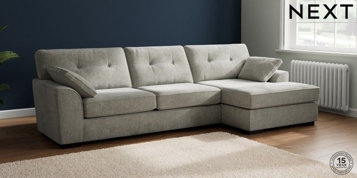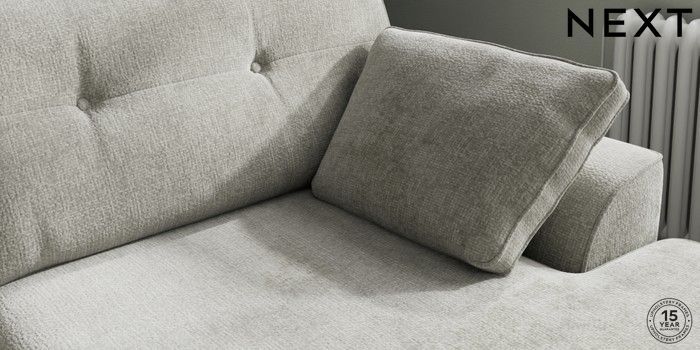 7.2.10 Buy Stamford Buttoned Back Large Sofa Chaise - Right Hand Chunky Chenille Light Grey Large Square Angle - Dark from the Laura Ashley online shop Click here to use our website with more accessibility support, for example screen readers