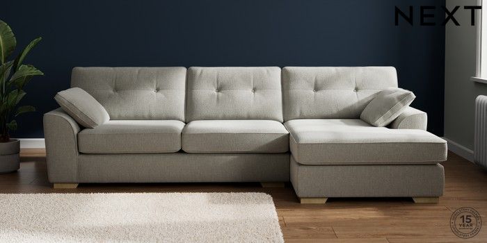 7.2.10 Buy Stamford Buttoned Back Large Sofa Chaise - Right Hand Chunky Texture Dove Large Square Angle - Light from the Laura Ashley online shop Click here to use our website with more accessibility support, for example screen readers