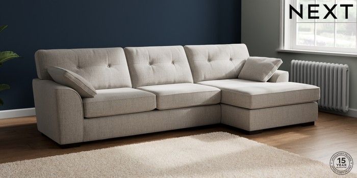 7.2.10 Buy Stamford Buttoned Back Large Sofa Chaise - Right Hand Chunky Weave Dove Grey Large Square Angle - Dark from the Laura Ashley online shop Click here to use our website with more accessibility support, for example screen readers
