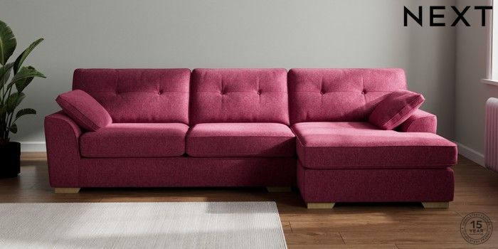 7.2.10 Buy Stamford Buttoned Back Large Sofa Chaise - Right Hand Cotswold Chenille Dark Raspberry Pink Large Square Angle - Light from the Laura Ashley online shop Click here to use our website with more accessibility support, for example screen readers