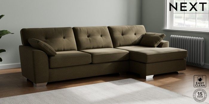 7.2.6 Buy Stamford Buttoned Back Large Sofa Chaise - Right Hand Fine Chenille Easy Clean Dark Moss Green Large Square Angle - Chrome Metal from the Laura Ashley online shop Click here to use our website with more accessibility support, for example screen readers