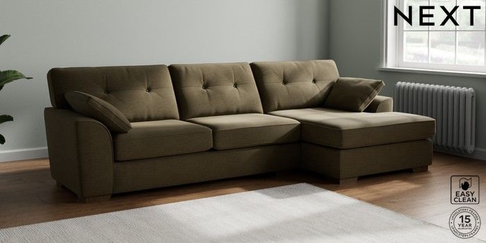 7.2.10 Buy Stamford Buttoned Back Large Sofa Chaise - Right Hand Fine Chenille Easy Clean Dark Moss Green Large Square Angle - Mid from the Laura Ashley online shop Click here to use our website with more accessibility support, for example screen readers