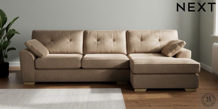 7.2.10 Buy Stamford Buttoned Back Large Sofa Chaise - Right Hand Luxe Chenille Mid Camel Beige Large Square Angle - Light from the Laura Ashley online shop Click here to use our website with more accessibility support, for example screen readers