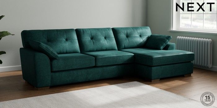 7.2.10 Buy Stamford Buttoned Back Large Sofa Chaise - Right Hand Plush Chenille Dark Teal Green Large Square Angle - Mid from the Laura Ashley online shop Click here to use our website with more accessibility support, for example screen readers