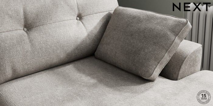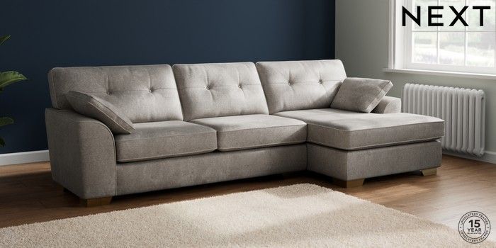 7.2.10 Buy Stamford Buttoned Back Large Sofa Chaise - Right Hand Plush Chenille Light Grey Large Square Angle - Brushed Brass from the Laura Ashley online shop Click here to use our website with more accessibility support, for example screen readers
