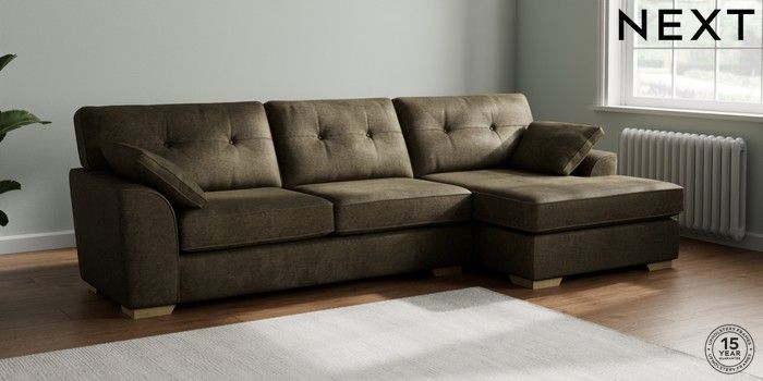 7.2.10 Buy Stamford Buttoned Back Large Sofa Chaise - Right Hand Plush Chenille Moss Green Large Square Angle - Light from the Laura Ashley online shop Click here to use our website with more accessibility support, for example screen readers