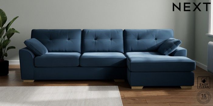 7.2.10 Buy Stamford Buttoned Back Large Sofa Chaise - Right Hand Plush Velvet Easy Clean Airforce Blue Large Square Angle - Light from the Laura Ashley online shop Click here to use our website with more accessibility support, for example screen readers