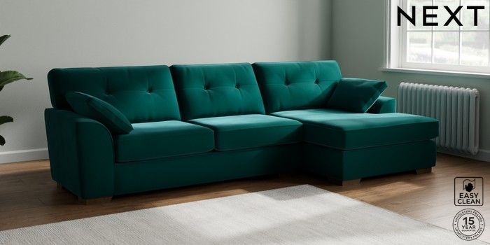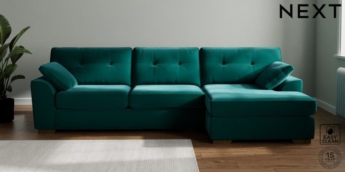 7.2.10 Buy Stamford Buttoned Back Large Sofa Chaise - Right Hand Plush Velvet Easy Clean Juniper Green Large Square Angle - Mid from the Laura Ashley online shop Click here to use our website with more accessibility support, for example screen readers