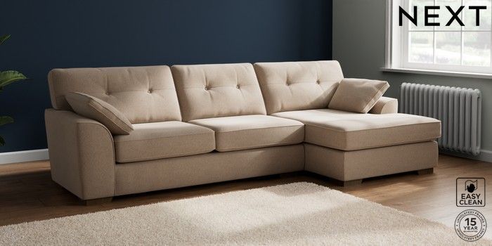 7.2.10 Buy Stamford Buttoned Back Large Sofa Chaise - Right Hand Tweedy Blend Easy Clean Light Dove Natural Large Square Angle - Mid from the Laura Ashley online shop Click here to use our website with more accessibility support, for example screen readers