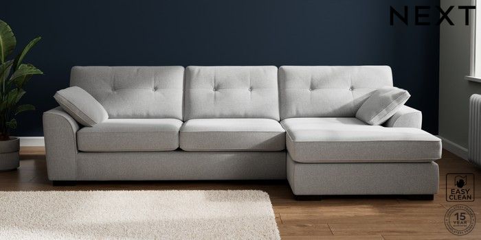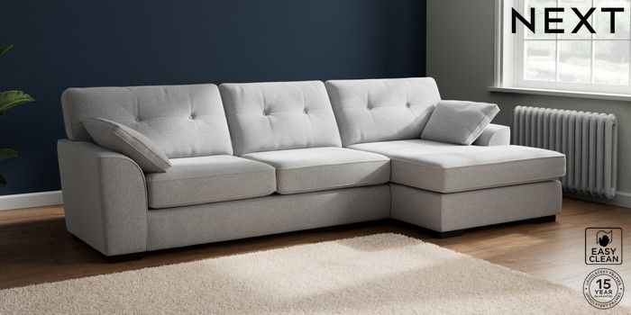 7.2.10 Buy Stamford Buttoned Back Large Sofa Chaise - Right Hand Tweedy Blend Easy Clean Light Silver Grey Large Square Angle - Dark from the Laura Ashley online shop Click here to use our website with more accessibility support, for example screen readers