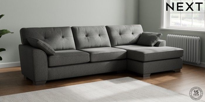 7.2.6 Buy Stamford Buttoned Back Large Sofa Chaise - Right Hand Tweedy Chenille Dark Grey Large Square Angle - Gunmetal from the Laura Ashley online shop Click here to use our website with more accessibility support, for example screen readers