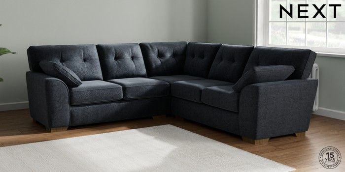 7.2.10 Buy Stamford Buttoned Back Medium Corner Sofa - Universal Boucle Chenille Dark Slate Blue Large Square Angle - Mid from the Laura Ashley online shop Click here to use our website with more accessibility support, for example screen readers