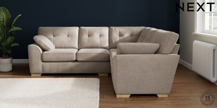 7.2.10 Buy Stamford Buttoned Back Medium Corner Sofa - Universal Boucle Chenille Light Natural Large Square Angle - Light from the Laura Ashley online shop Click here to use our website with more accessibility support, for example screen readers