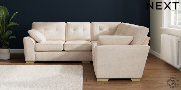 7.2.10 Buy Stamford Buttoned Back Medium Corner Sofa - Universal Boucle Chenille Oyster Large Square Angle - Light from the Laura Ashley online shop Click here to use our website with more accessibility support, for example screen readers