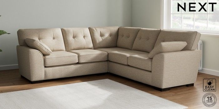 7.2.10 Buy Stamford Buttoned Back Medium Corner Sofa - Universal Boucle Weave Easy Clean Dark Natural Large Square Angle - Dark from the Laura Ashley online shop Click here to use our website with more accessibility support, for example screen readers