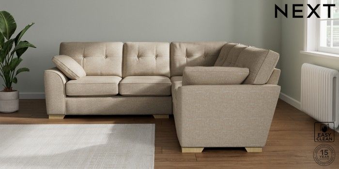 7.2.10 Buy Stamford Buttoned Back Medium Corner Sofa - Universal Boucle Weave Easy Clean Dark Natural Large Square Angle - Light from the Laura Ashley online shop Click here to use our website with more accessibility support, for example screen readers