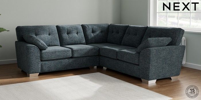 7.2.6 Buy Stamford Buttoned Back Medium Corner Sofa - Universal Chunky Chenille Dark Navy Blue Large Square Angle - Chrome Metal from the Laura Ashley online shop Click here to use our website with more accessibility support, for example screen readers