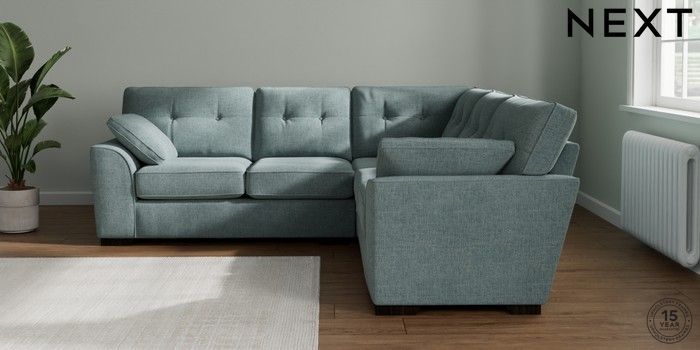 7.2.10 Buy Stamford Buttoned Back Medium Corner Sofa - Universal Chunky Chenille Light Teal Green Large Square Angle - Dark from the Laura Ashley online shop Click here to use our website with more accessibility support, for example screen readers