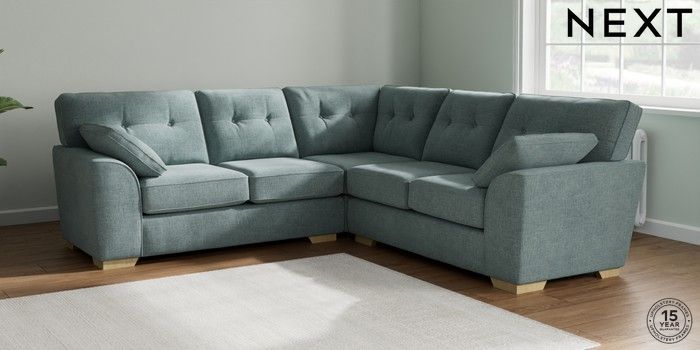 7.2.10 Buy Stamford Buttoned Back Medium Corner Sofa - Universal Chunky Chenille Light Teal Green Large Square Angle - Light from the Laura Ashley online shop Click here to use our website with more accessibility support, for example screen readers