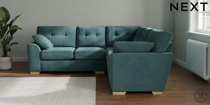7.2.10 Buy Stamford Buttoned Back Medium Corner Sofa - Universal Chunky Chenille Mid Teal Green Large Square Angle - Light from the Laura Ashley online shop Click here to use our website with more accessibility support, for example screen readers