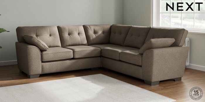 7.2.10 Buy Stamford Buttoned Back Medium Corner Sofa - Universal Chunky Weave Dark Natural Large Square Angle - Gunmetal from the Laura Ashley online shop Click here to use our website with more accessibility support, for example screen readers