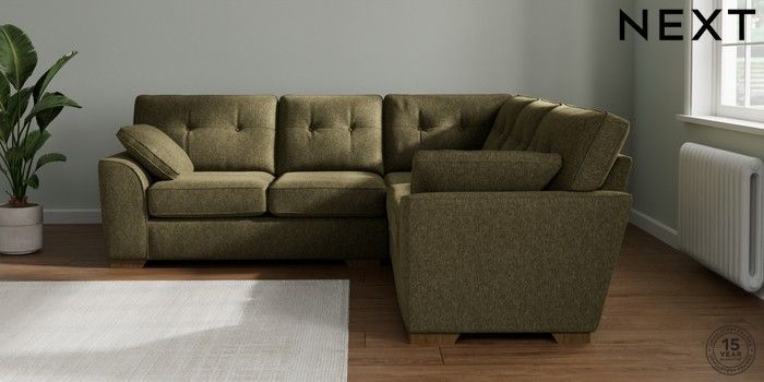 7.2.10 Buy Stamford Buttoned Back Medium Corner Sofa - Universal Cotswold Chenille Dark Green Large Square Angle - Mid from the Laura Ashley online shop Click here to use our website with more accessibility support, for example screen readers