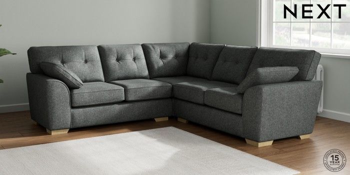7.2.6 Buy Stamford Buttoned Back Medium Corner Sofa - Universal Cotswold Chenille Dark Grey Large Square Angle - Light from the Laura Ashley online shop Click here to use our website with more accessibility support, for example screen readers