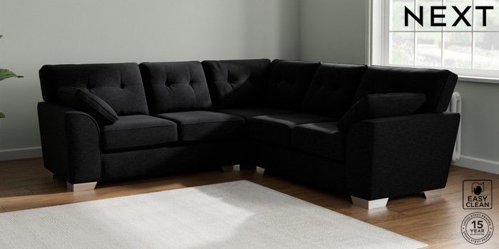 7.2.6 Buy Stamford Buttoned Back Medium Corner Sofa - Universal Fine Chenille Easy Clean Black Large Square Angle - Chrome Metal from the Laura Ashley online shop Click here to use our website with more accessibility support, for example screen readers