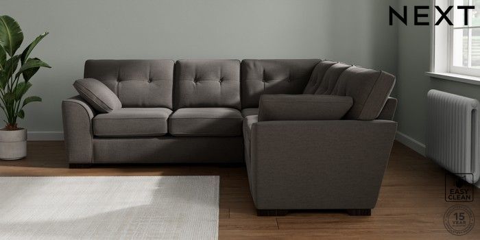 7.2.10 Buy Stamford Buttoned Back Medium Corner Sofa - Universal Fine Chenille Easy Clean Dark Smoke Grey Large Square Angle - Dark from the Laura Ashley online shop Click here to use our website with more accessibility support, for example screen readers