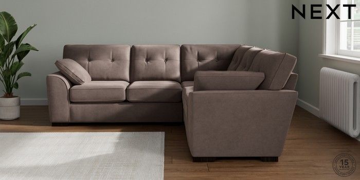 7.2.10 Buy Stamford Buttoned Back Medium Corner Sofa - Universal Luxe Chenille Mink Brown Large Square Angle - Dark from the Laura Ashley online shop Click here to use our website with more accessibility support, for example screen readers
