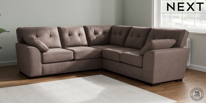 6.12.1 Buy Stamford Buttoned Back Medium Corner Sofa - Universal Luxe Chenille Mink Brown Large Square Angle - Dark from the Laura Ashley online shop Click here to use our website with more accessibility support, for example screen readers