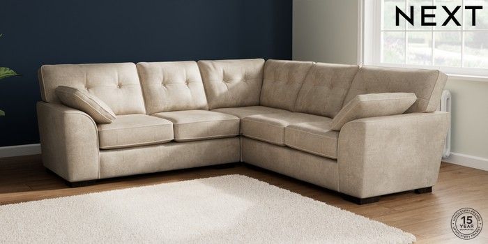 7.2.10 Buy Stamford Buttoned Back Medium Corner Sofa - Universal Plush Chenille Light Natural Large Square Angle - Dark from the Laura Ashley online shop Click here to use our website with more accessibility support, for example screen readers