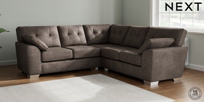 7.2.10 Buy Stamford Buttoned Back Medium Corner Sofa - Universal Plush Chenille Mink Brown Large Square Angle - Chrome Metal from the Laura Ashley online shop Click here to use our website with more accessibility support, for example screen readers